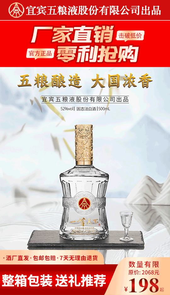 【五粮液 一尊天下】限时疯抢! 浓香型 52度 500ml 官方正品 宜宾五粮液股份有限公司出品 全国包邮